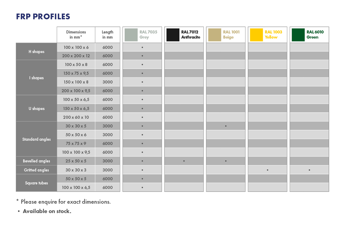 Available in various sections and dimensions, polyester profiles allow the design of custom-made installations that comply with the technical and regulatory requirements of each project.
